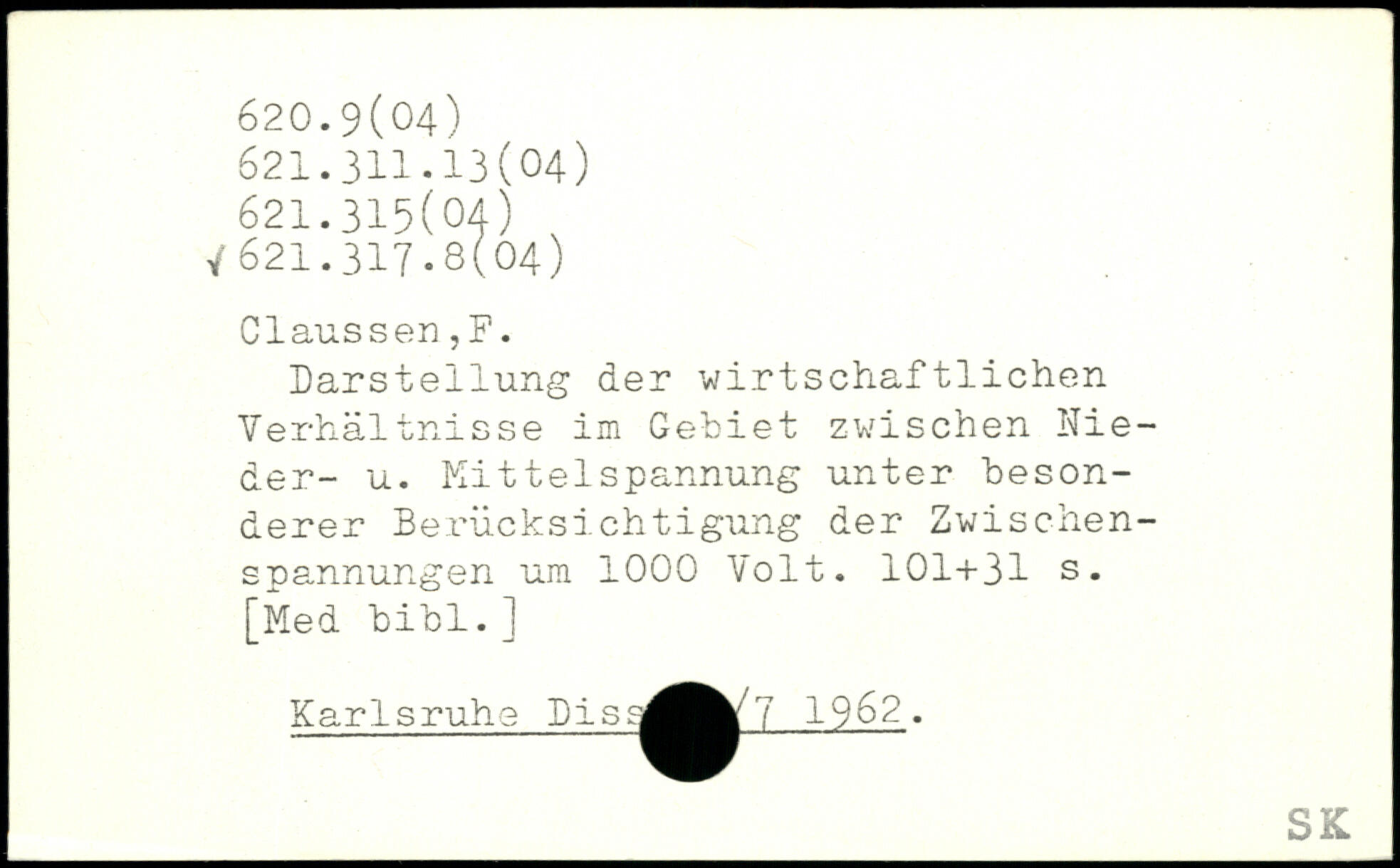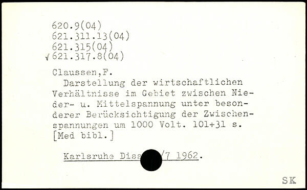 Darstellung der wirtschaftlichen Verhältnisse im Gebiet zwischen Nieder- u. KittelSpannung unter besonderer Berücksichtigung der Zwischenspannungen um 1000 Volt.