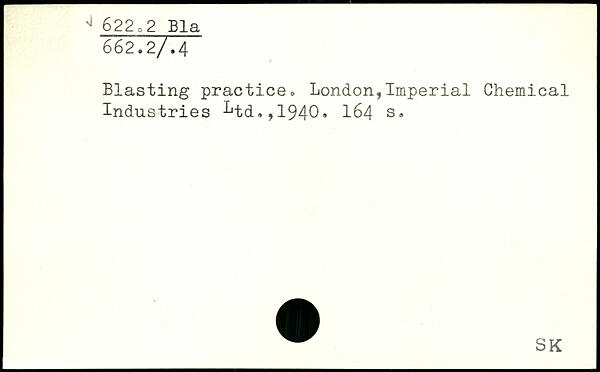 Blasting practice. London,Imperial Chemical Industries ^td.,1940, I
