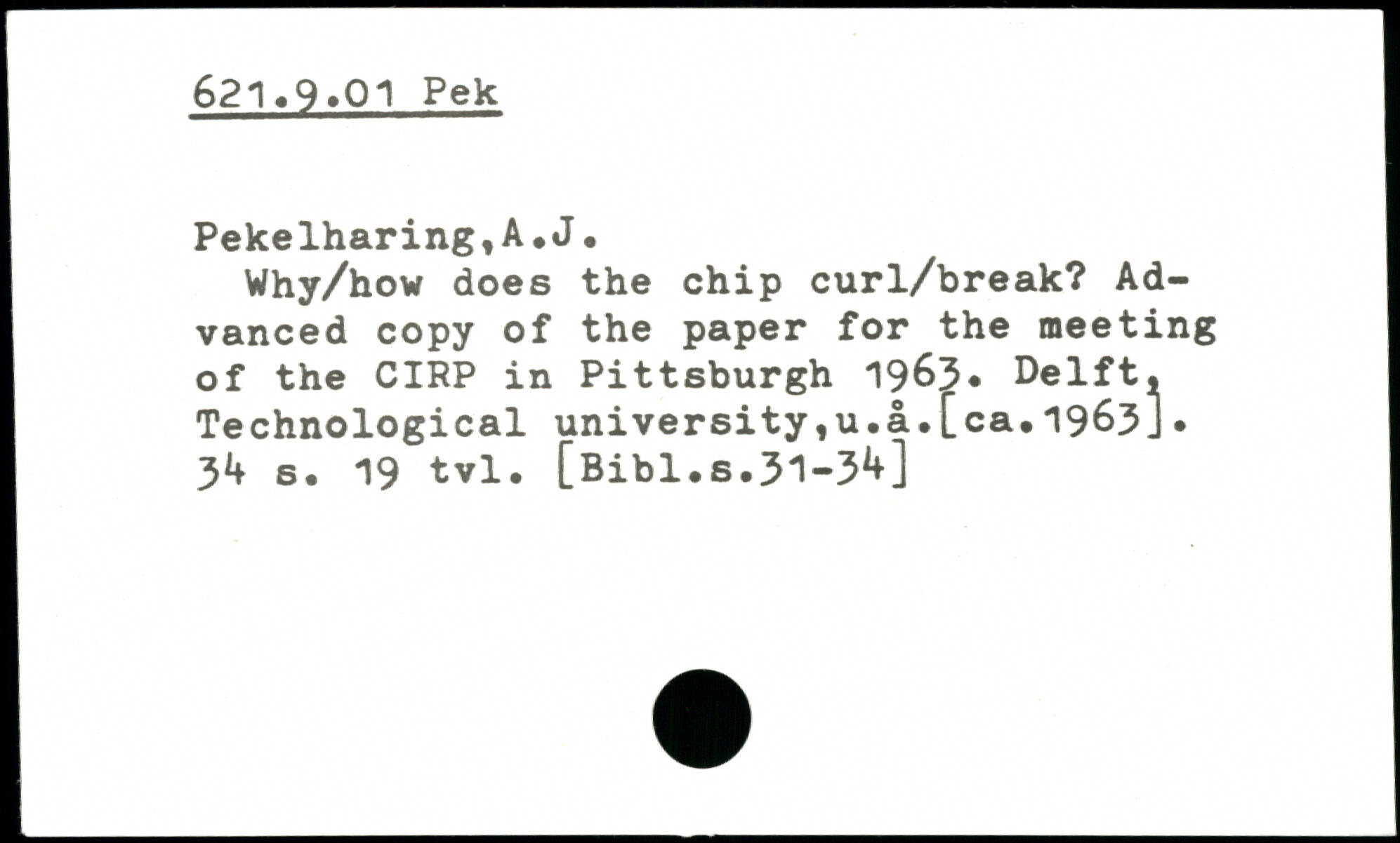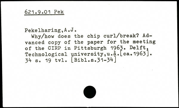 Why/how does the chip curl/break? Advanced copy of the paper for the meeting of the CIRP in Pittsburgh 19^3. Delft. Technological university,u.a.[ca.1963]. 31. s. 19 tvl.