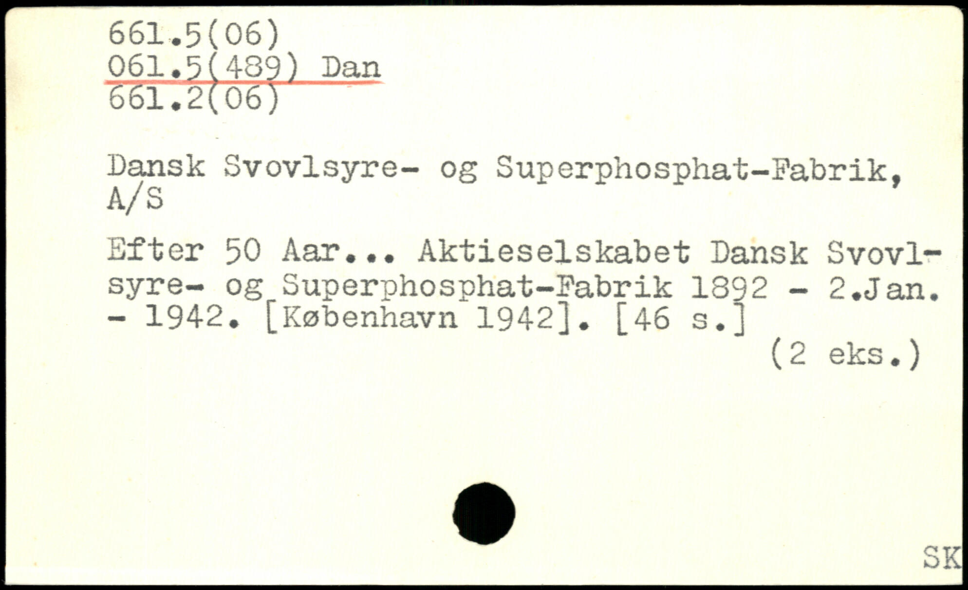 Dansk Svovlsyre- og Superphosphat-Fabrik. Efter 50 Aar... Aktieselskabet Dansk Svovlsyre- og Superphosphat-Fabrik 1892 - 2.Jan. - 1942.