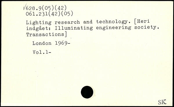 Lighting research and technology. [Heri indgået.. Illuminating engineering society. Transactions]