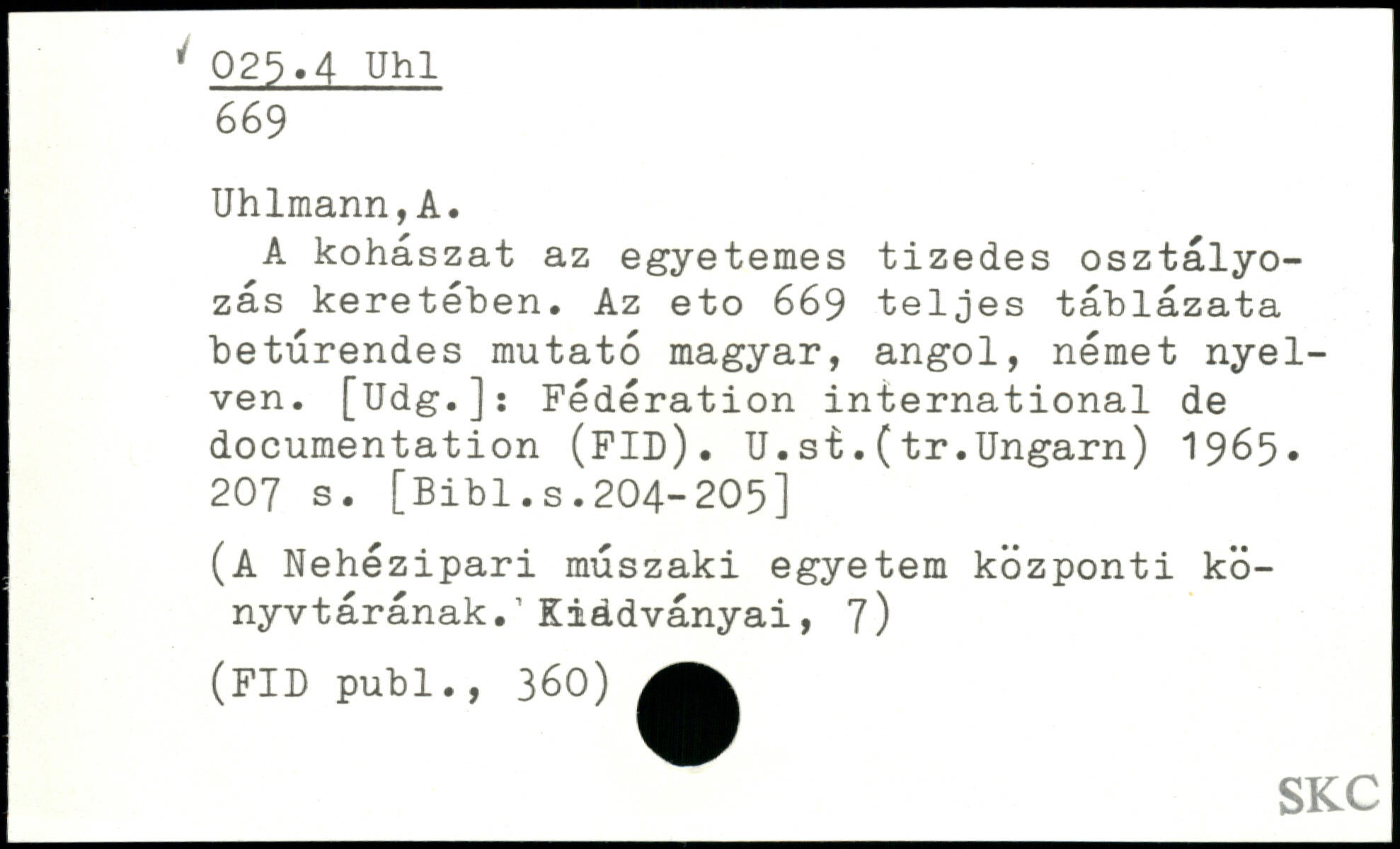 UDK: 4, 025.4 Uhl, 669