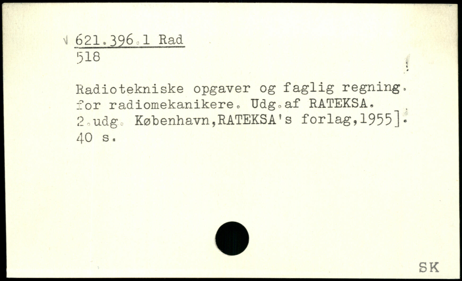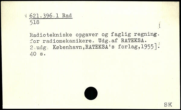 Radiotekniske opgaver og faglig regning, for radiomekanikere. Udg^af RATEKSA. 2,udg = København,RATEKSA’s forlag,1955].