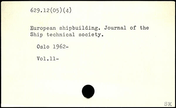European shipbuilding. Journal of the Ship technical society. Oslo 1962- Vol.ll-