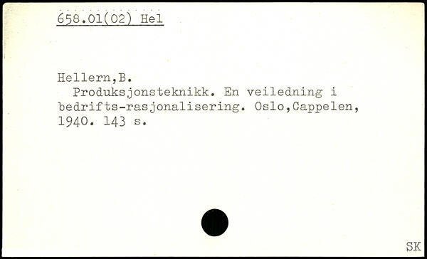 Produksjonsteknikk. En veiledning i Bedrifts-rasjonalisering. Oslo,Cappelen