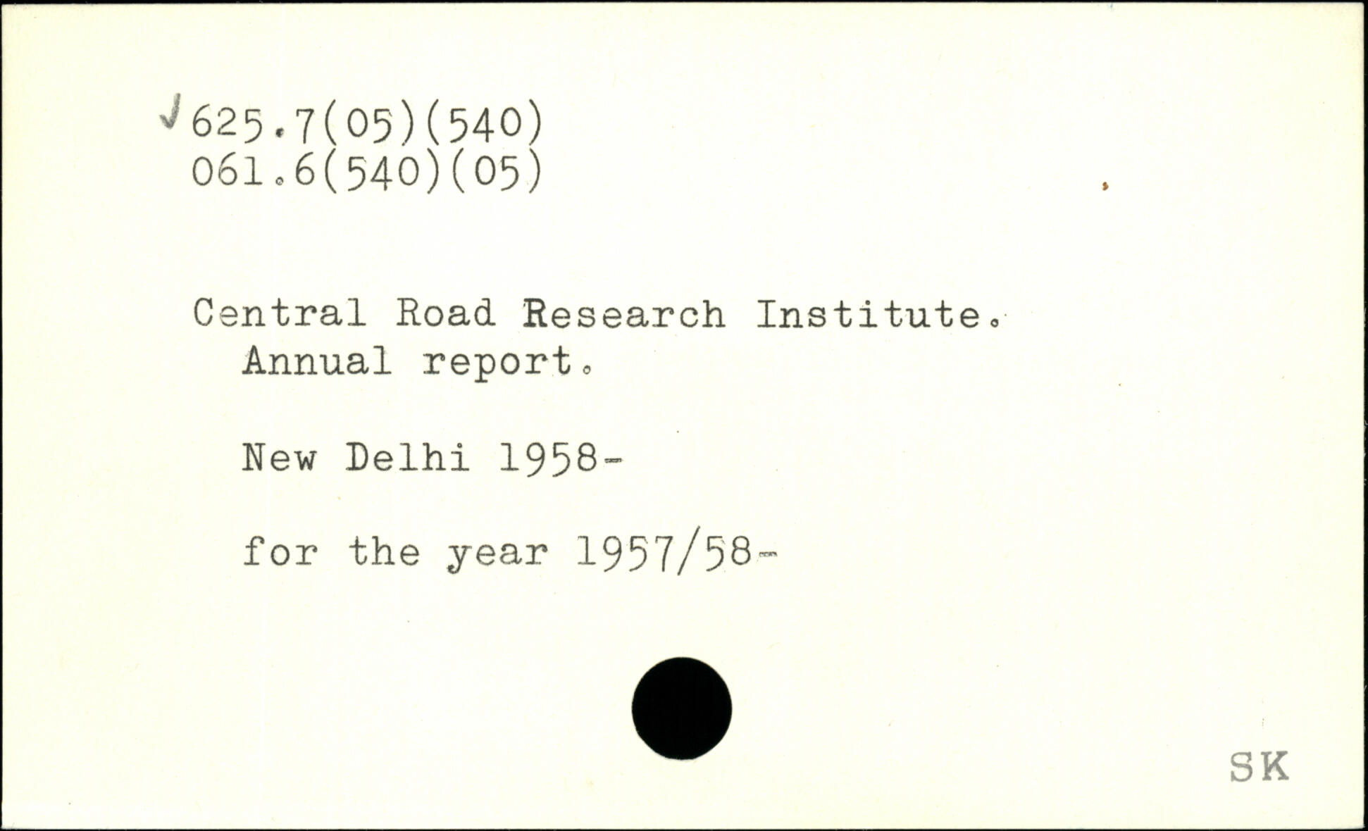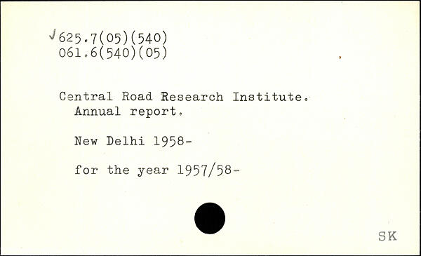 Central Road Research Institute, Annual report, New Delhi 1958- for the year 1957/58™