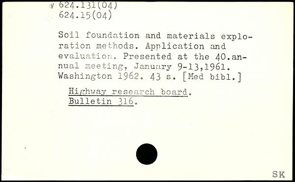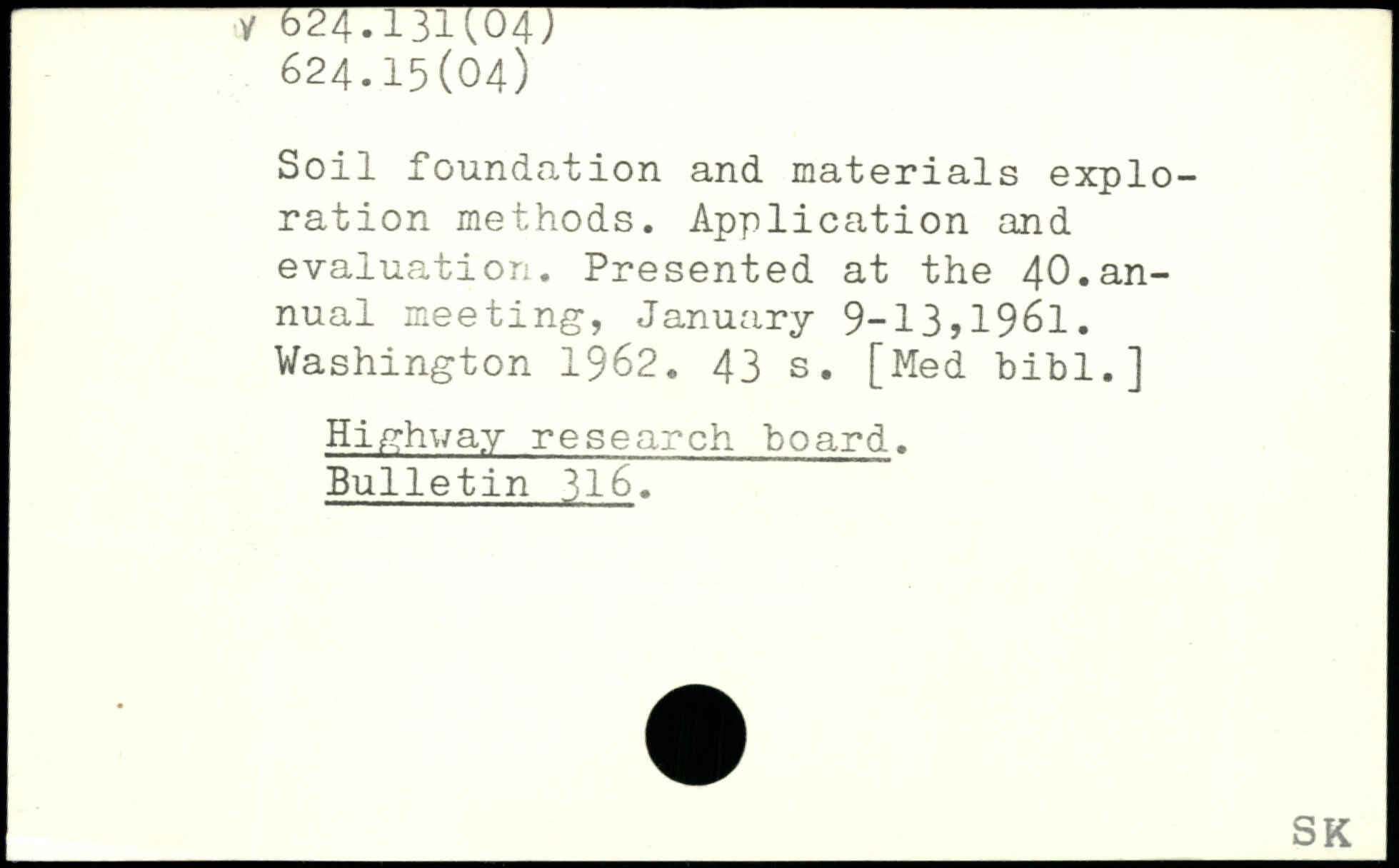 Soil foundation and materials exploration methods. Application and evaluation. Presented at the 40.annual meeting, January 9-13,1961.