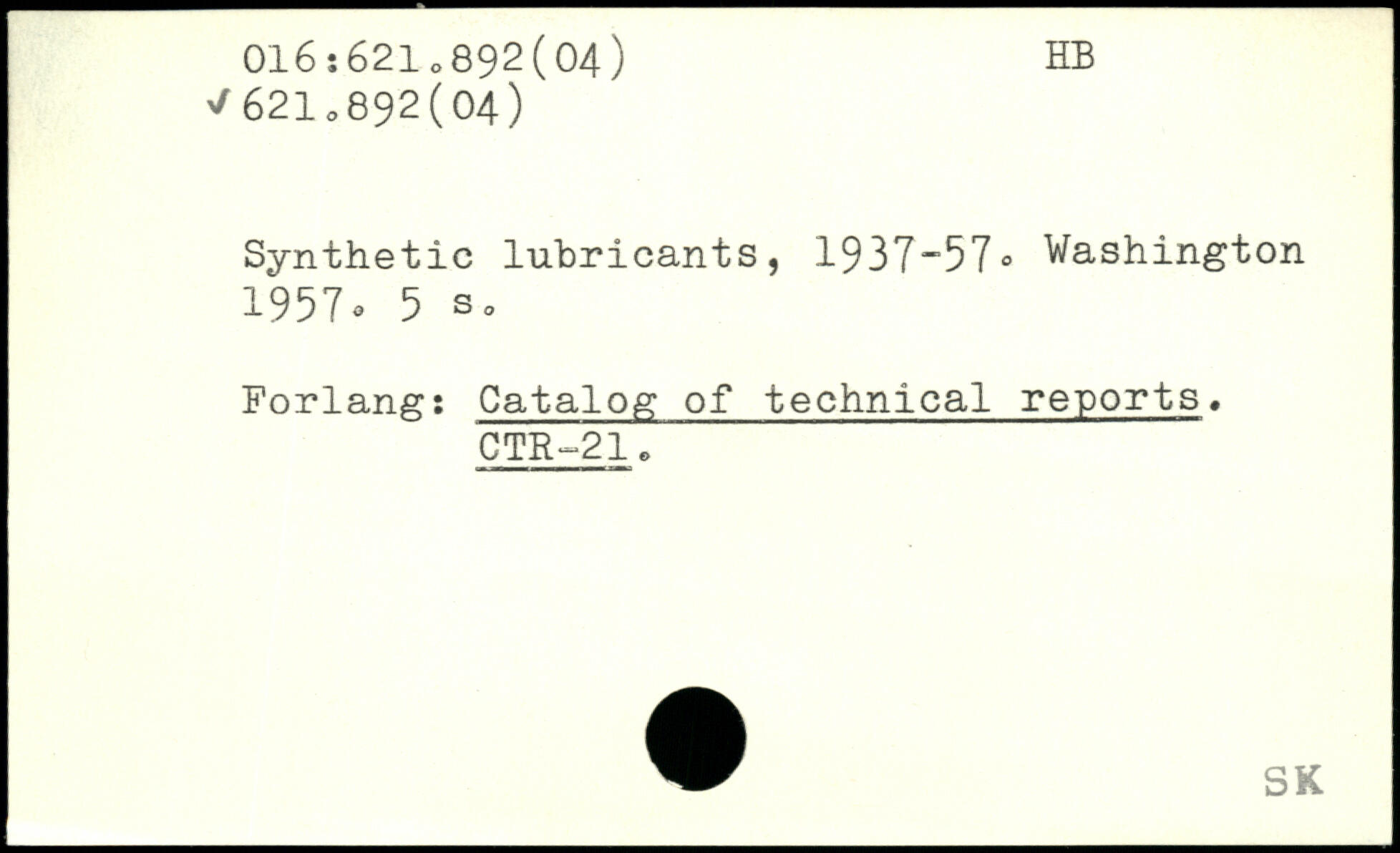 Synthetic lubricants, 1937-57.