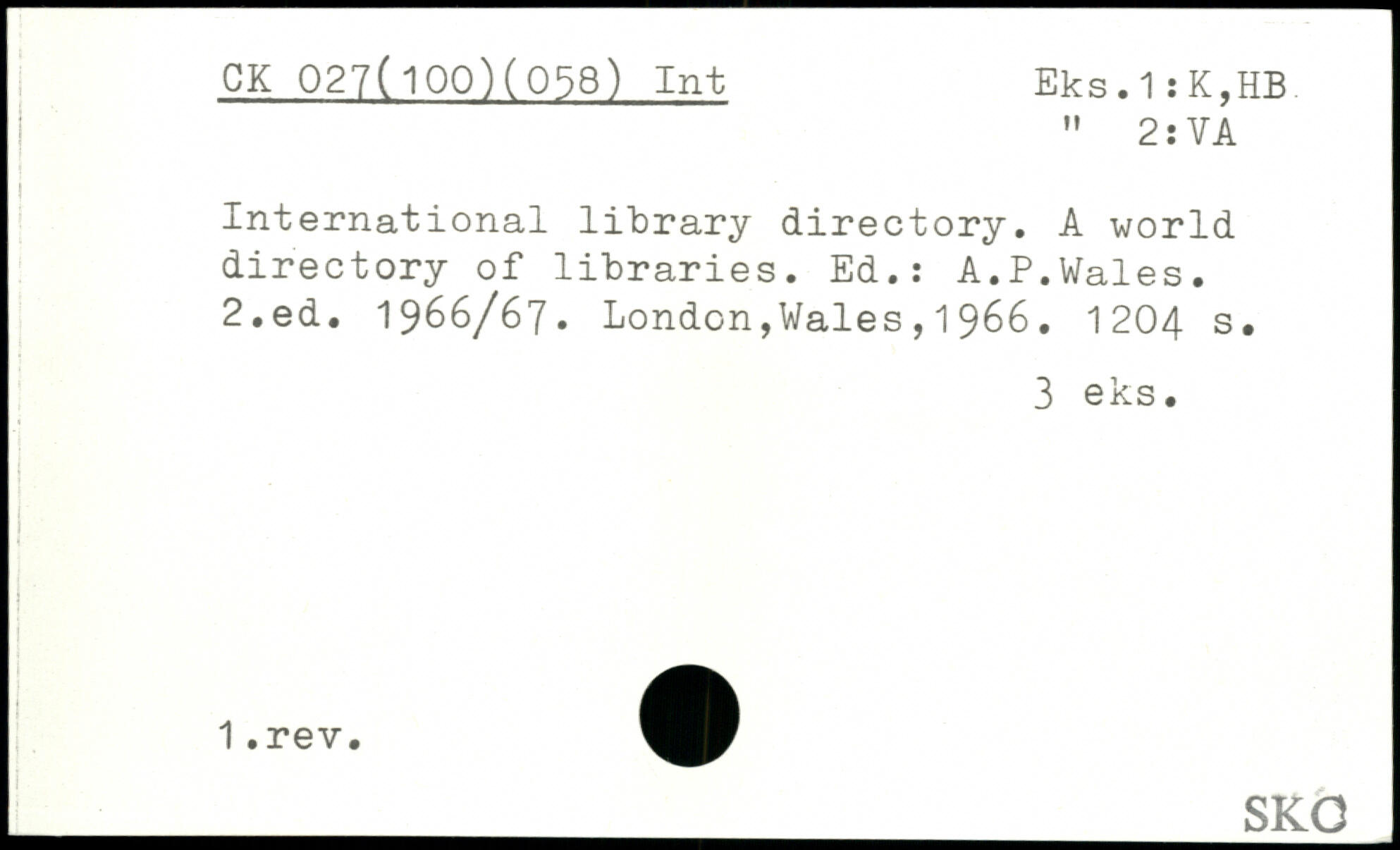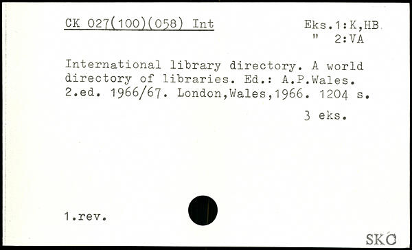 International library directory. A world directory of libraries. Ed.: A.P.Wales.
