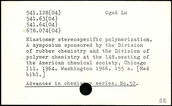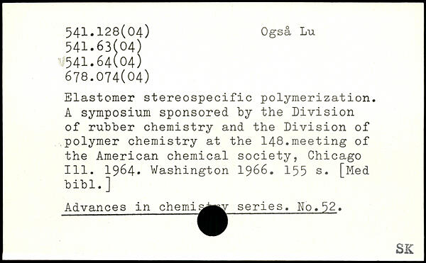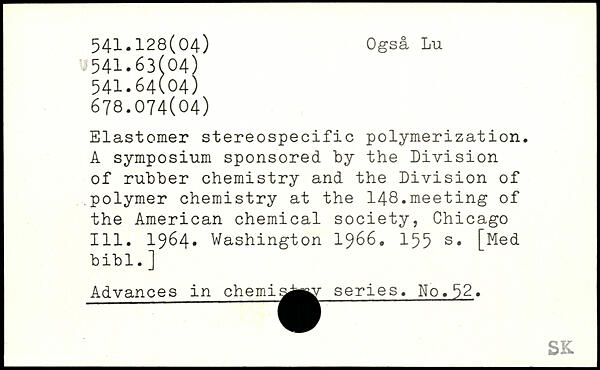 Elastomer stereospecific polymerization. A symposium sponsored by the Division of rubber chemistry and the Division of polymer chemistry at the 148.meeting of the American chemical society, Chicago 111. 1964.