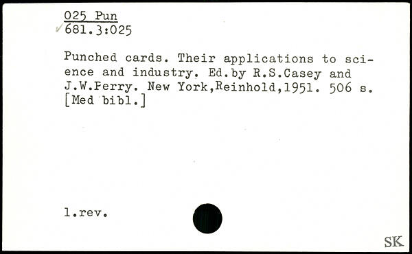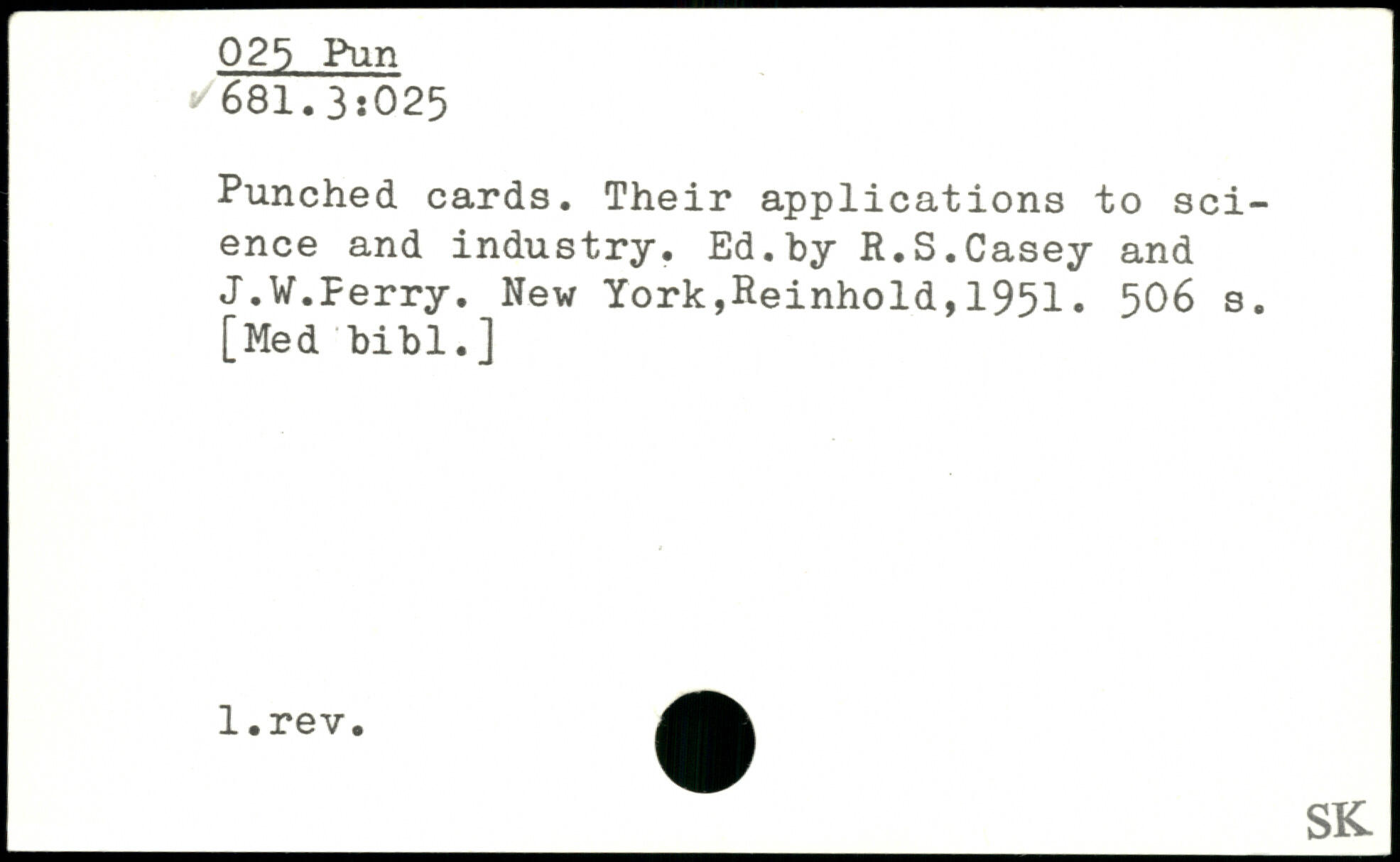 Punched cards. Their applications to science and industry. Ed.by R.S.Casey and J.W.Perry.