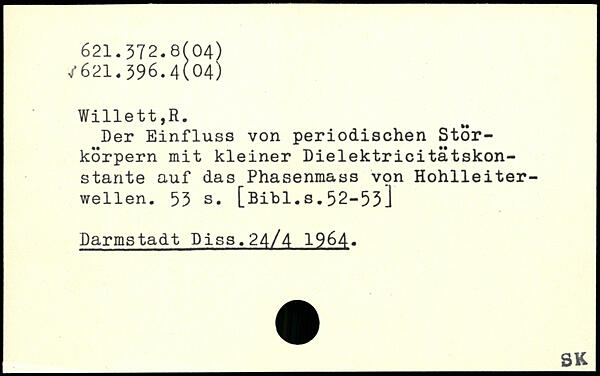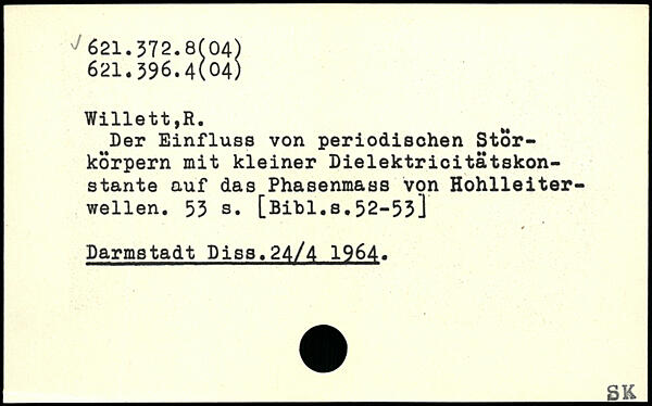 Der Einfluss von periodischen Stor-körpern mit kleiner Dielektricitätskon-stante auf das Phasenmass von Hohlleiterwellen.
