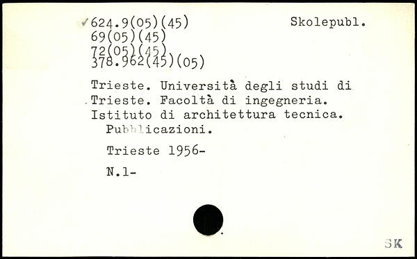 Trieste. Università degli studi di .Trieste. Facoltà di ingegneria. Istituto di architettura tecnica. Pubblicazioni. Trieste 195 6—