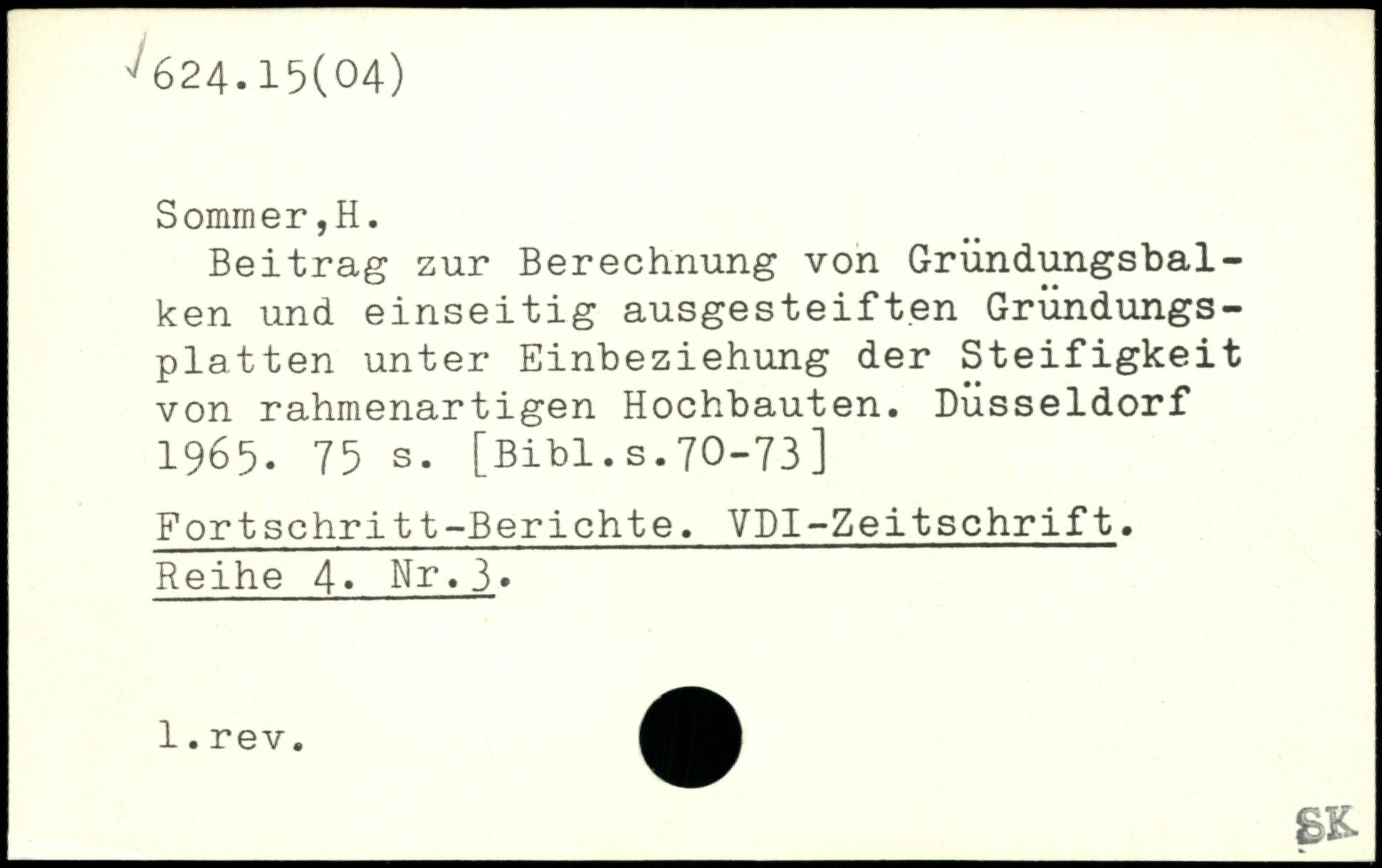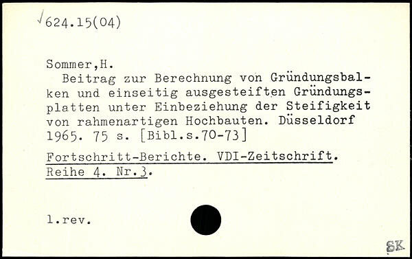 Beitrag zur Berechnung von Gründungsbal-ken und einseitig ausgesteif t.en Gründungsplatten unter Einbeziehung der Steifigkeit von rahmenartigen Hochbauten. Düsseldorf 1965.