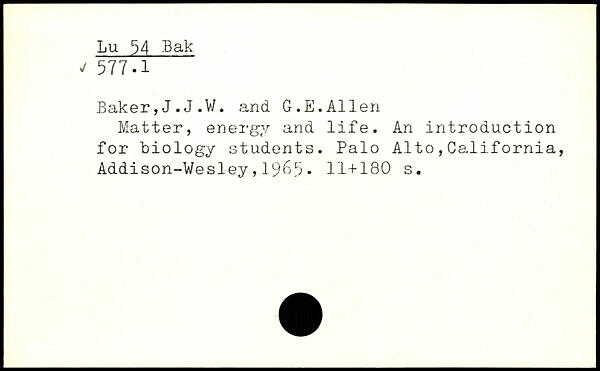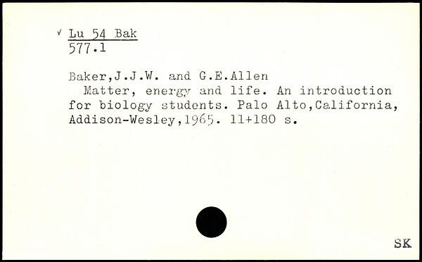 Matter, energy and life. An introduction for "biology students.