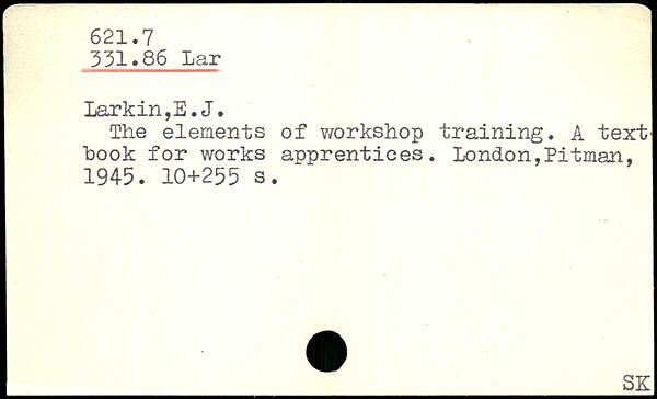 The elements of workshop training. A text hook for works apprentices. London,Pitman, 194-5.
