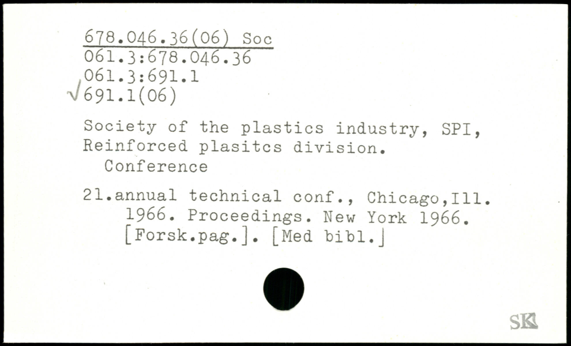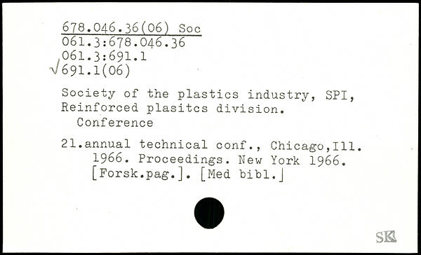 Society of the plastics industry, SPI, Reinforced plasitcs division. Conference 21.annual technical conf., Chicago,111. 1966. Proceedings.