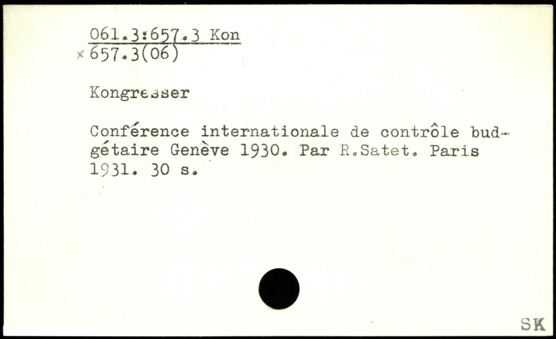 Conférence internationale de contrôle budgétaire Genève 1930. Par R.Satet