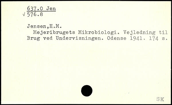 Mejeribrugets Mikrobiologi. Vejledning til Brug ved Undervisningen. Odense 1941'