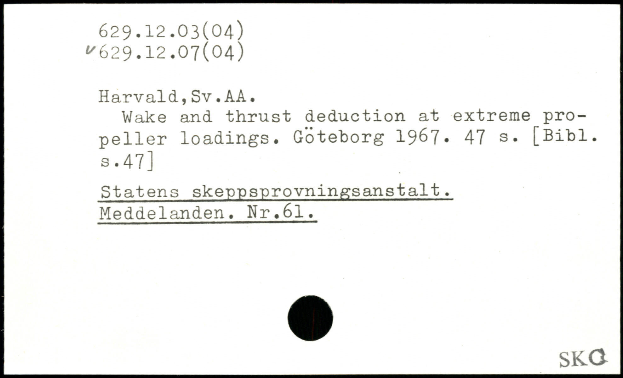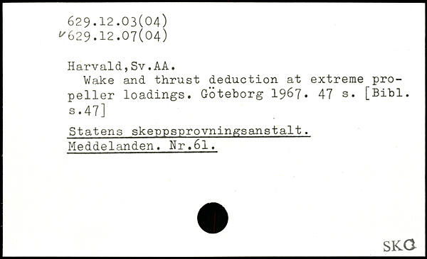 Harvald, Sv. AA. Wake and thrust deduction at extreme pro-peller loadings. Göteborg 1967.