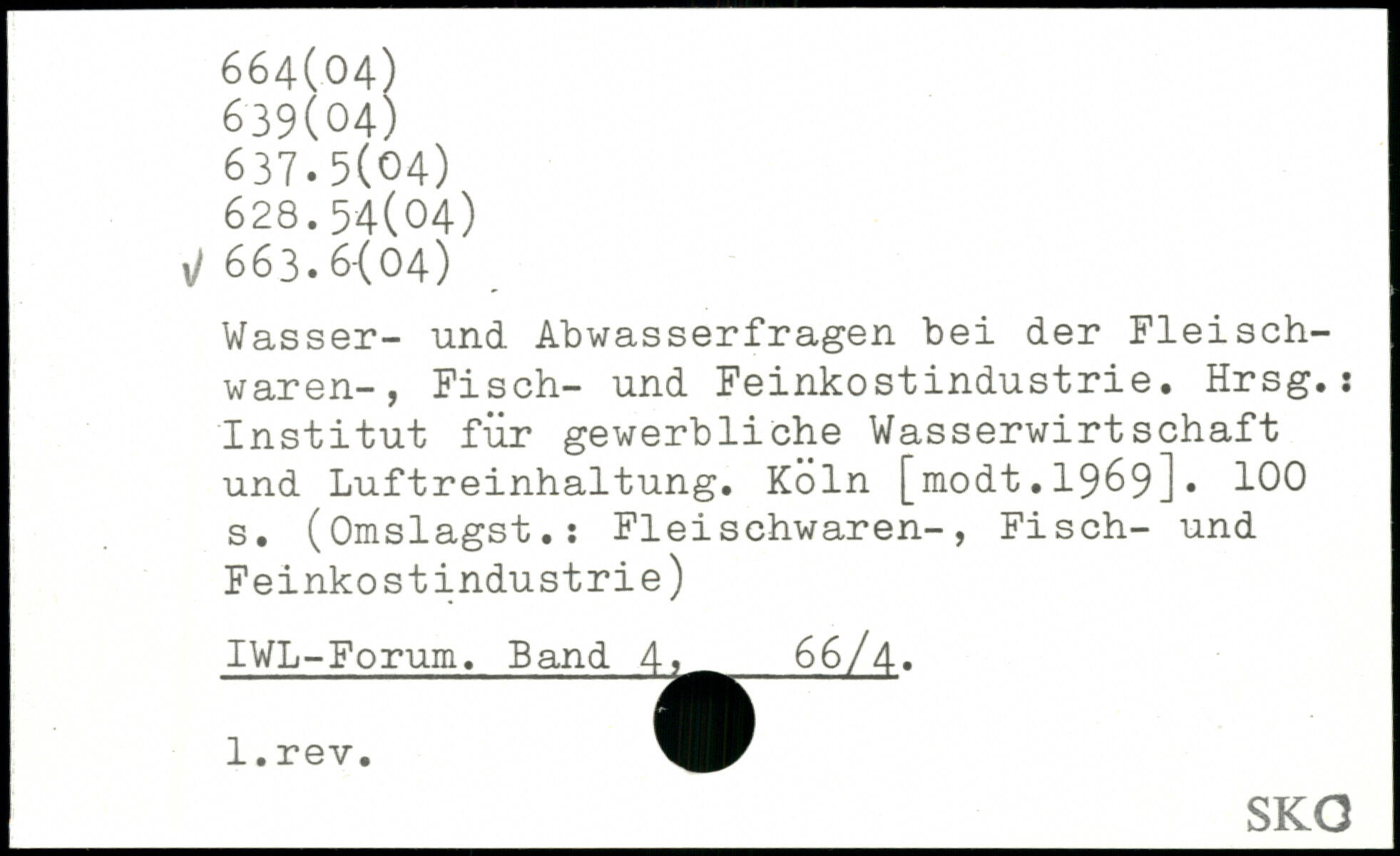 Wasser- und Abwasserfragen bei der Fleischwaren-, Fisch- und Feinkostindustrie. Hrsg.; Institut für gewerbliche Wasserwirtschaft und Luftreinhaltung. Köln [1n.odt.1969]