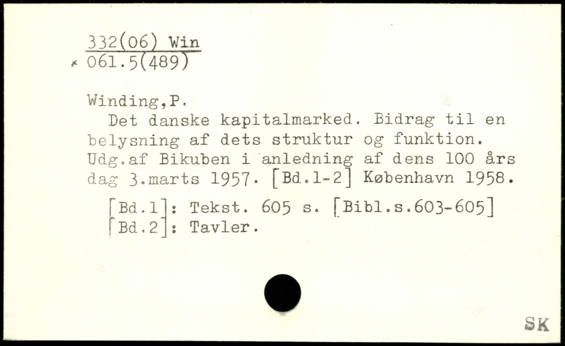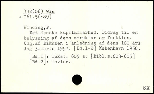 Det danske kapitalmarked. Bidrag til en belysning af dets struktur og funktion. Udg.af Bikuben i anledning af dens 100 års dag 3-marts 1957- [Bd.l-2j