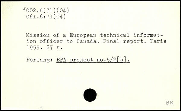 Mission of a European technical information officer to Canada. Final report.