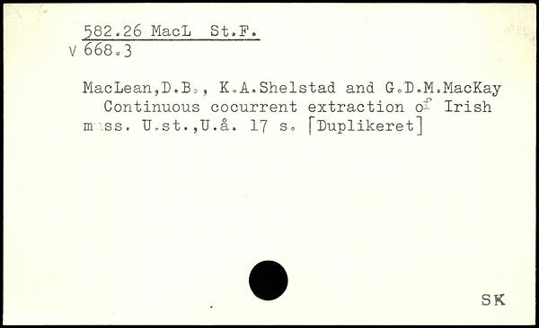 MacLean,D.B a, K,A.Shelstad and GoD,M.MacKay Continuons cocurrent extraction Irish m ss, U,st.,U.â.