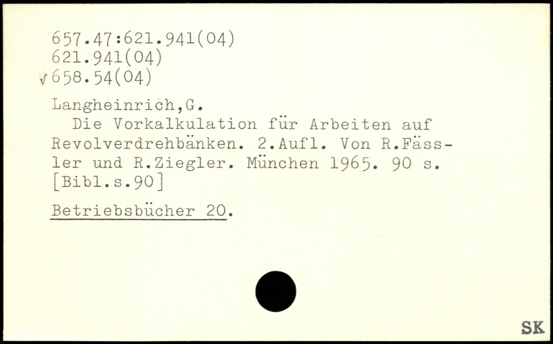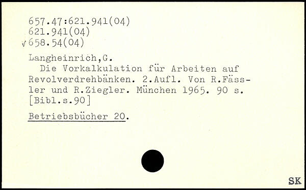 Die Vorkalkulation für Arbeiten auf Revolverdrehbanken.
