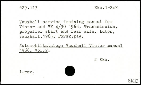Yauxhall service training manual for Victor and VX 4/90 1966. Transmission, propeller shaft and rear axle.