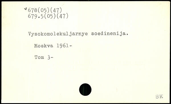 Vysokomolekuljarnye soedinenija.