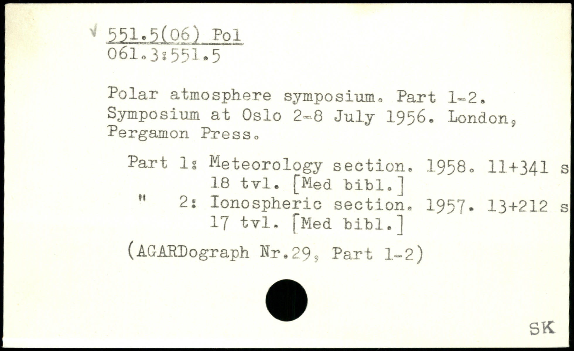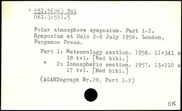 Polar atmosphere symposium, Part 1-2. Symposium at Oslo 2-8 July 1956. London? Pergamon Press. Part lg Meteorology section. 1958.