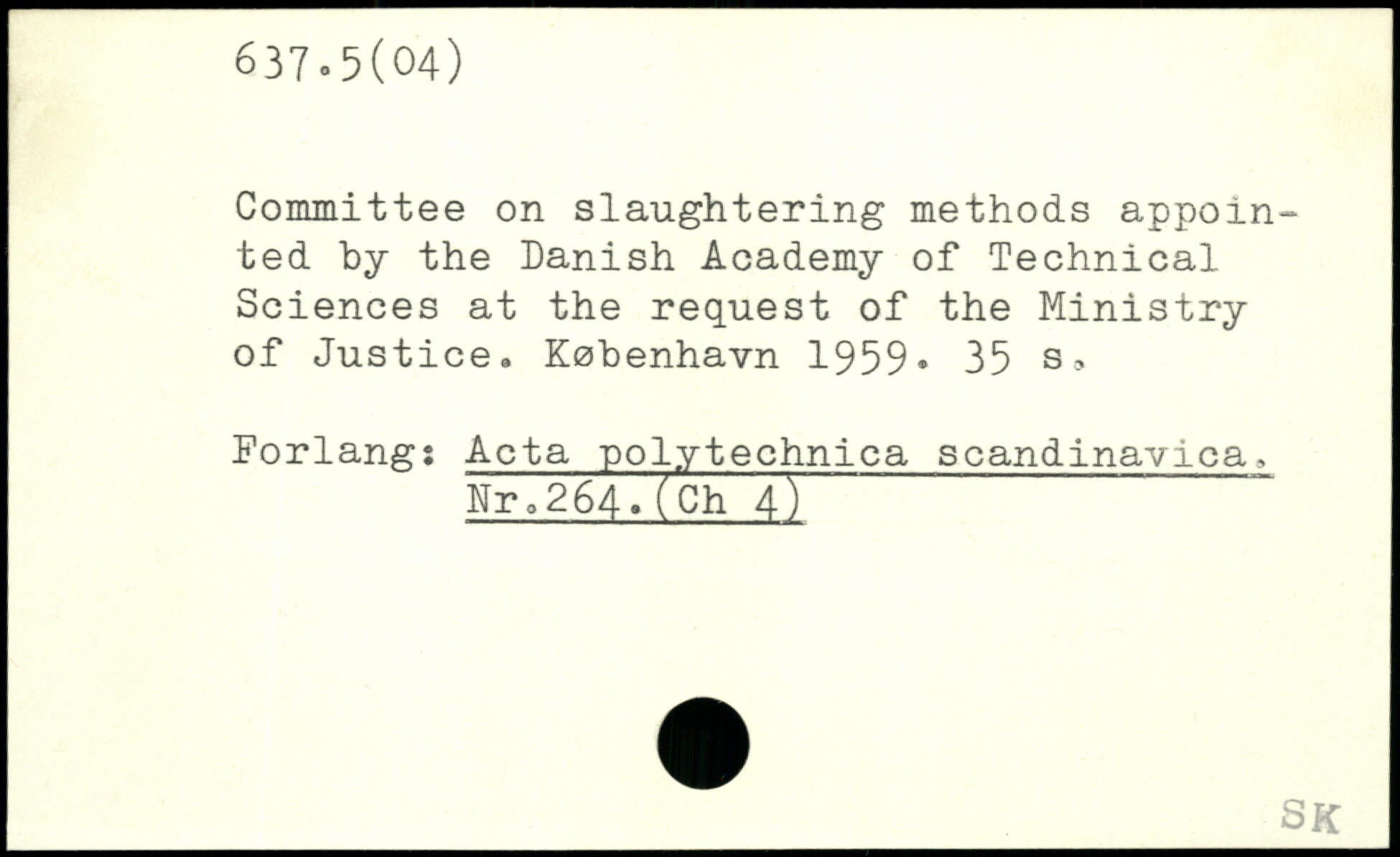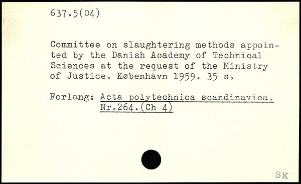 Committee on slaughtering methods appointed by the Danish Academy of Technical Sciences at the request of the Ministry of Justice.