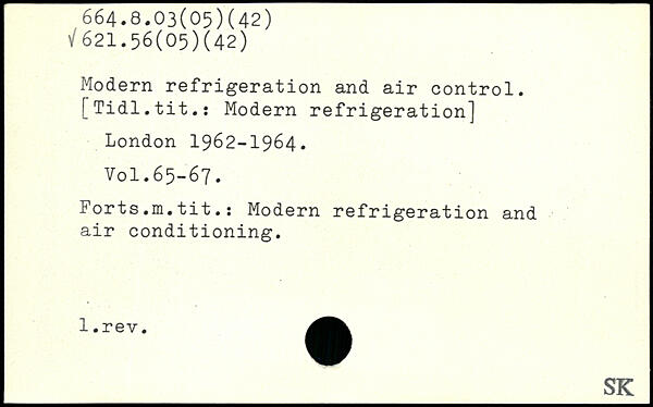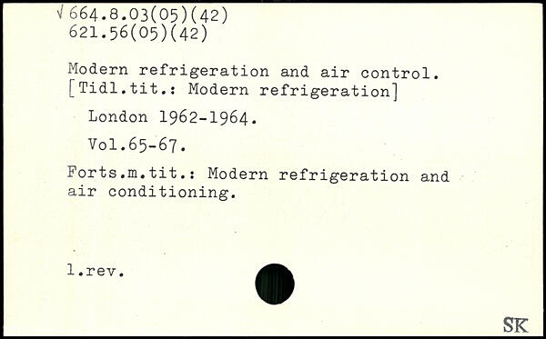 Modern refrigeration and air control. [Tidl.tit.: Modern refrigeration]