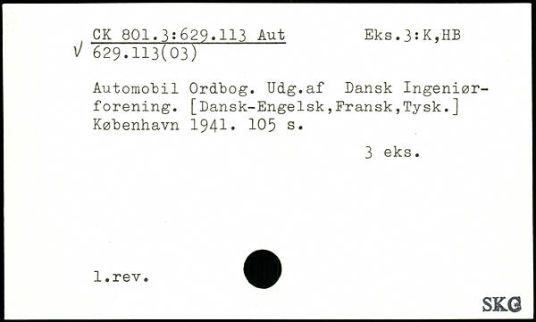 Automobil Ordbog. Udg.af Dansk Ingeniør-forening. [Dansk-Engelsk,Fransk,Tysk.J