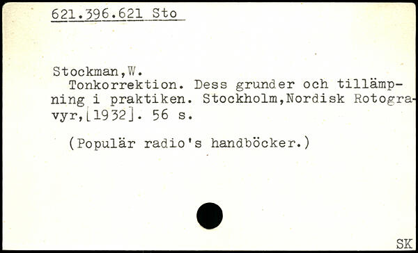 Tonkorrektion. Dess grunder och tillämpning i praktiken. Stockholm,Nordisk Rotogra-vyr, L19 32].