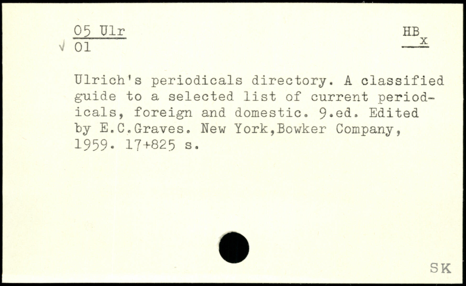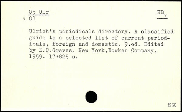 si 01 — Ulrich’s periodicals directory. A classified guide to a selected list of current periodicals, foreign and domestic.
