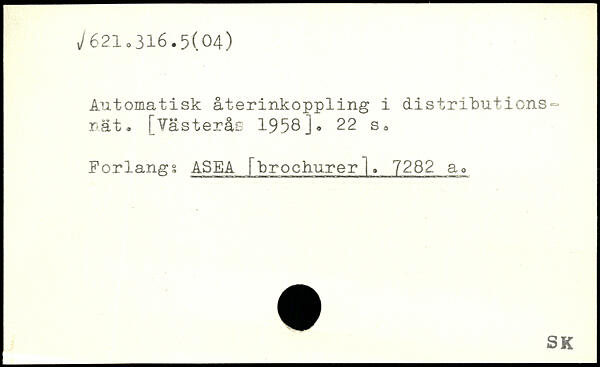 Automatisk återinkoppling i distributions-nät. [Västerås 1958]-