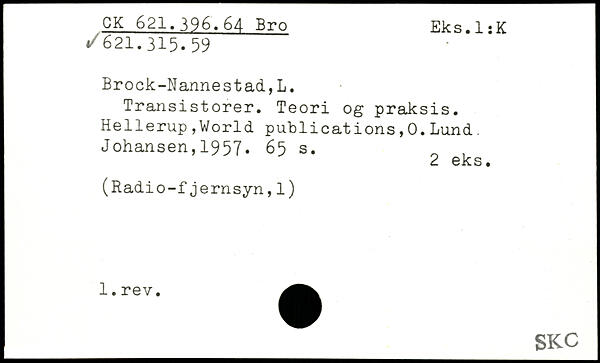 Transistorer. Teori og praksis. Hellerup,World publications,0.Lund. Johansen,1957.