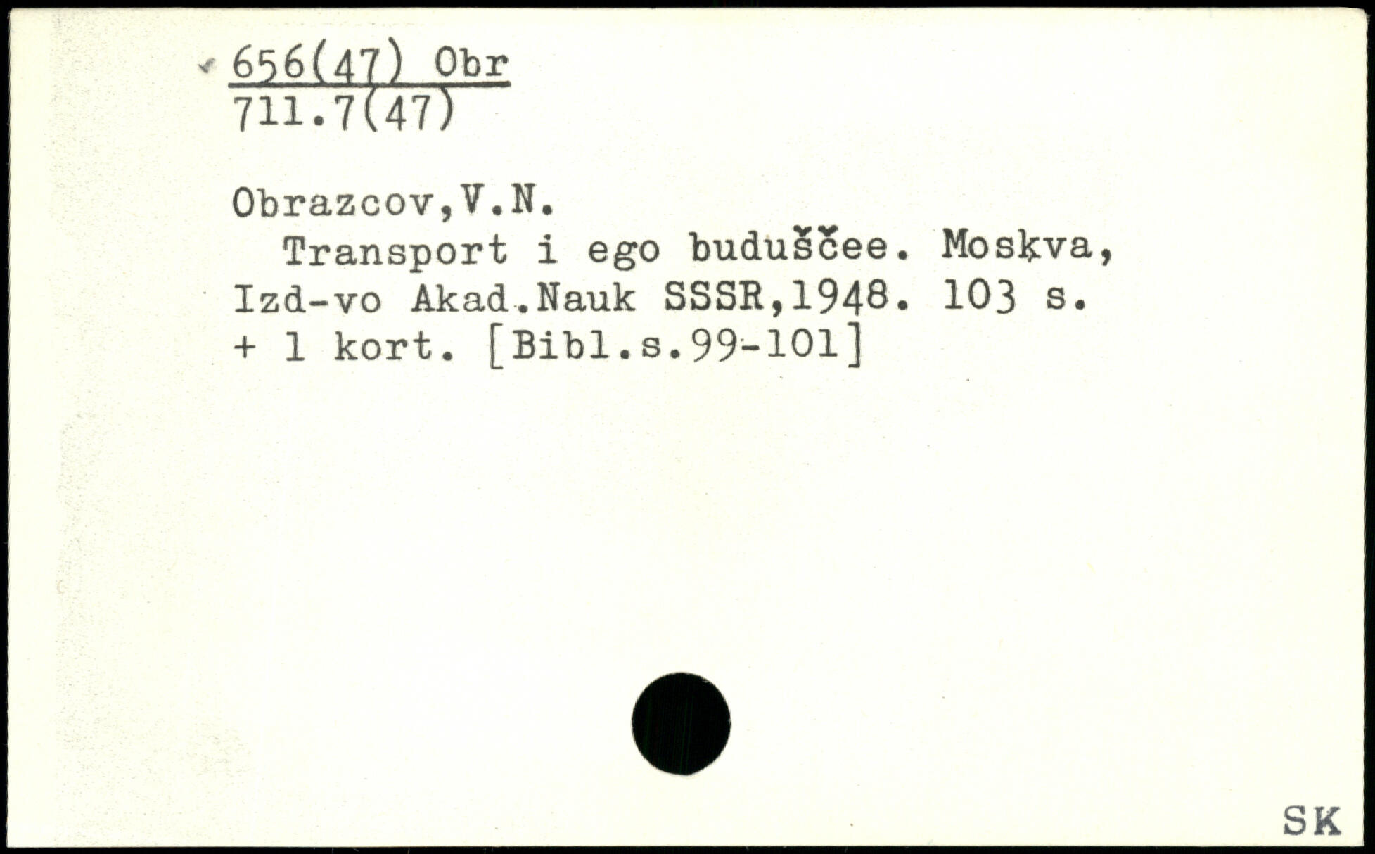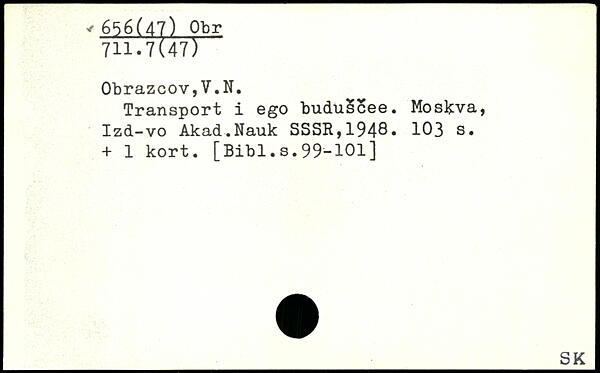 Transport i ego buduscee. Moskva, Izd-vo Akad.Nauk SSSR,1948.