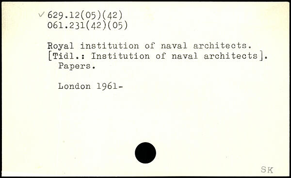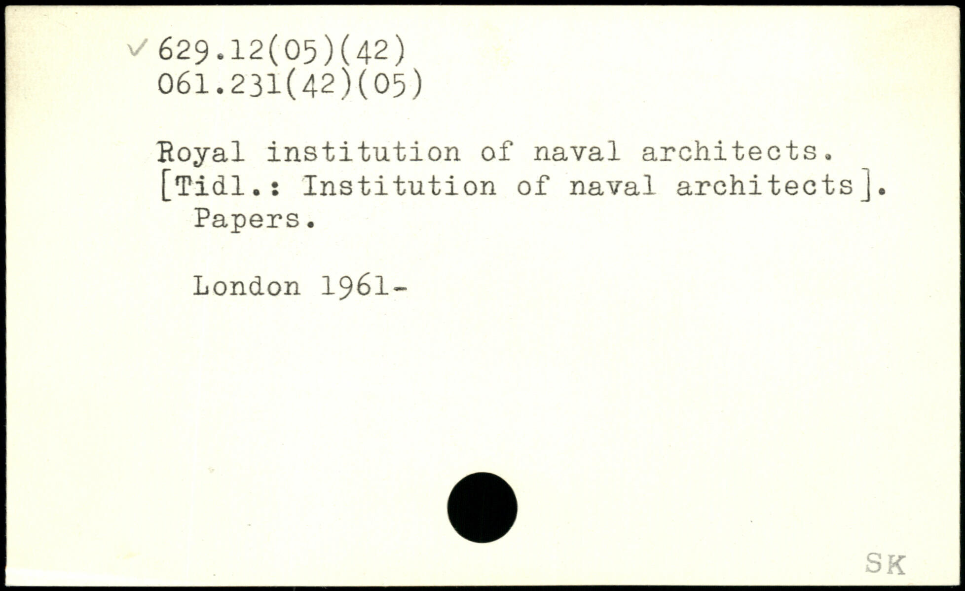 Boyal institution of naval architects, [Tidl.: Institution of naval architects]. Papers.