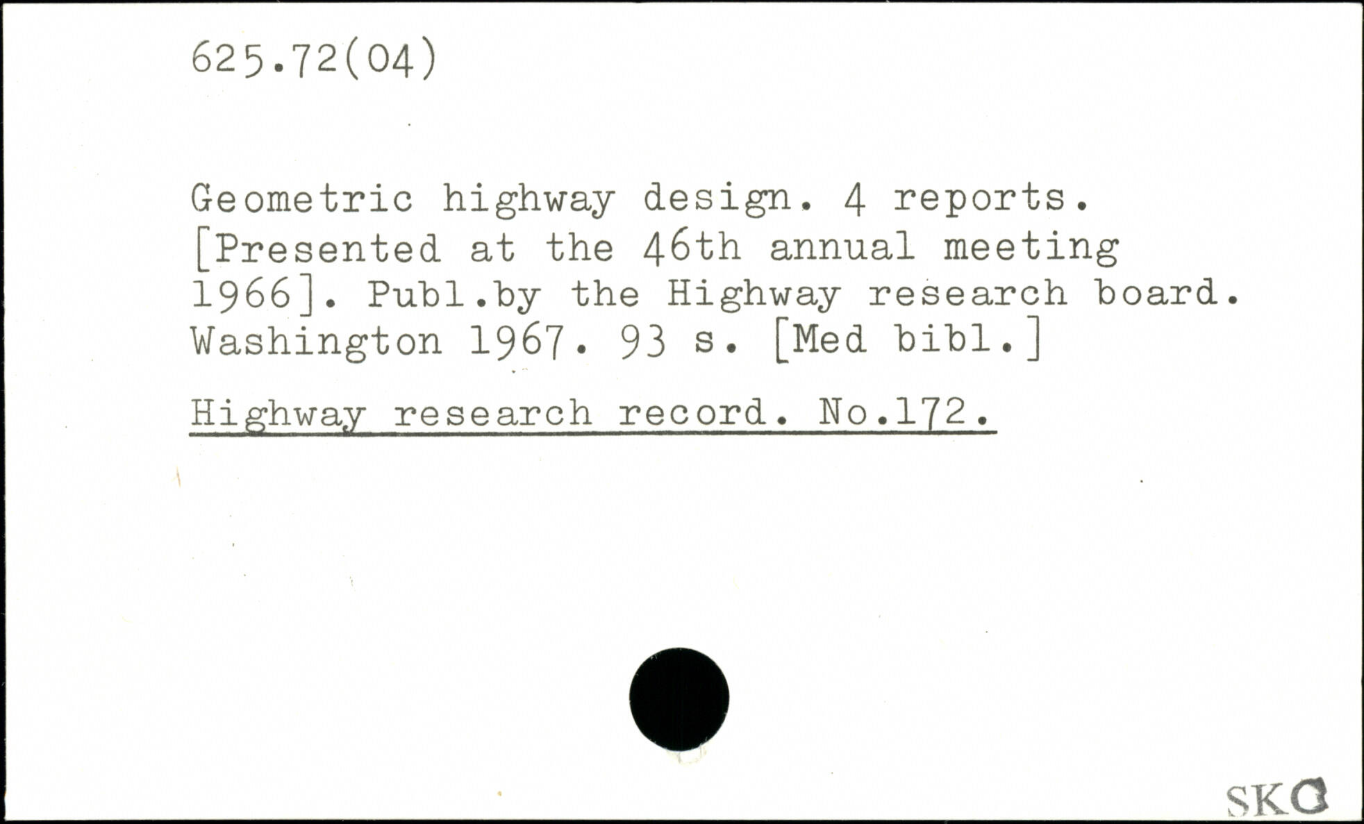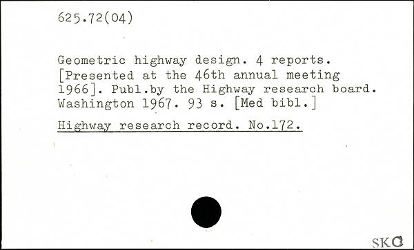 Geometric highway design. 4 reports. [Presented at the 46th annual meeting 1966]. Puh1.by the Highway research board.