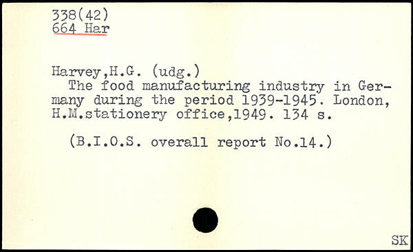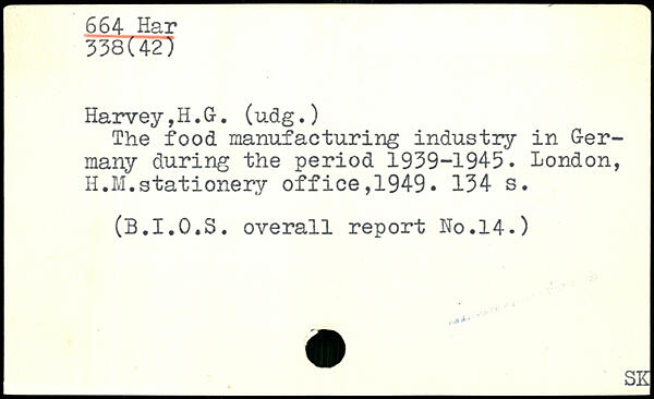 The food manufacturing industry in Germany during the period 1939-1945. London, H.M.stationery office,1949.