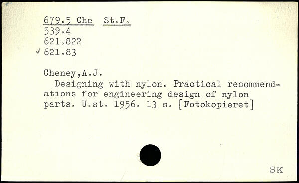 Designing with nylon. Practical recommend“ ations for engineering design of nylon parts. Uosto 1956.