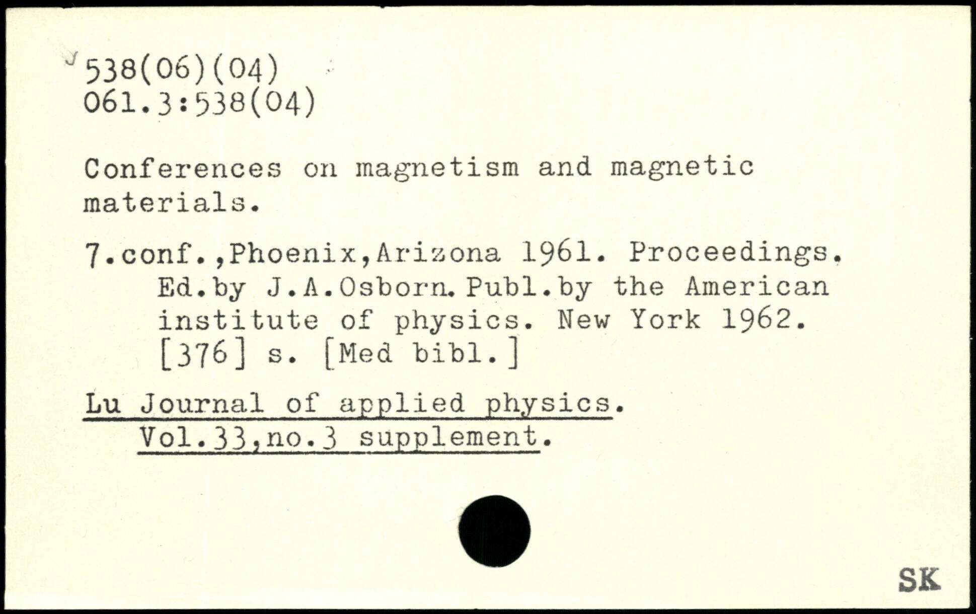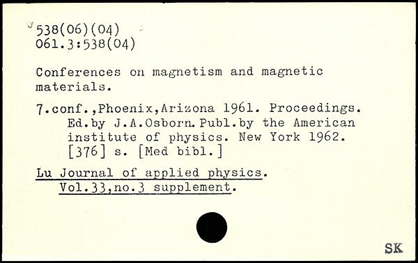 Conferences on magnetism and magnetic materials. 7.conf.,Phoenix,Arizona 1961. Proceedings. Ed.by J.A.Osborn.