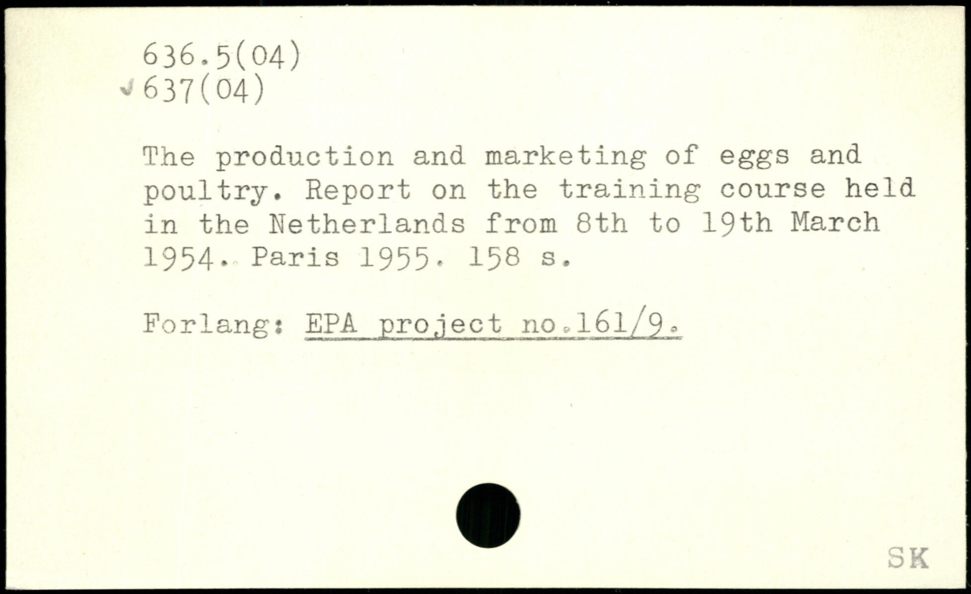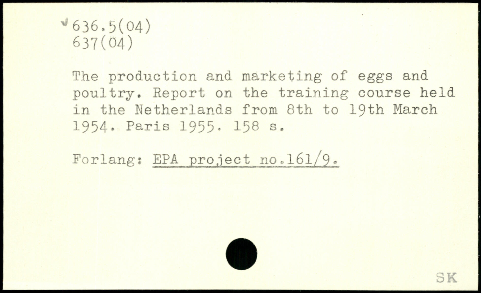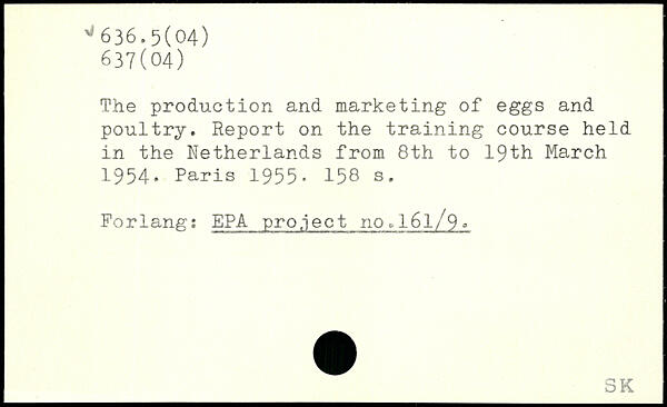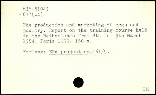 The production and marketing of eggs and poultry. Report on the training course held in the Netherlands from 8th to 19th March 1954.