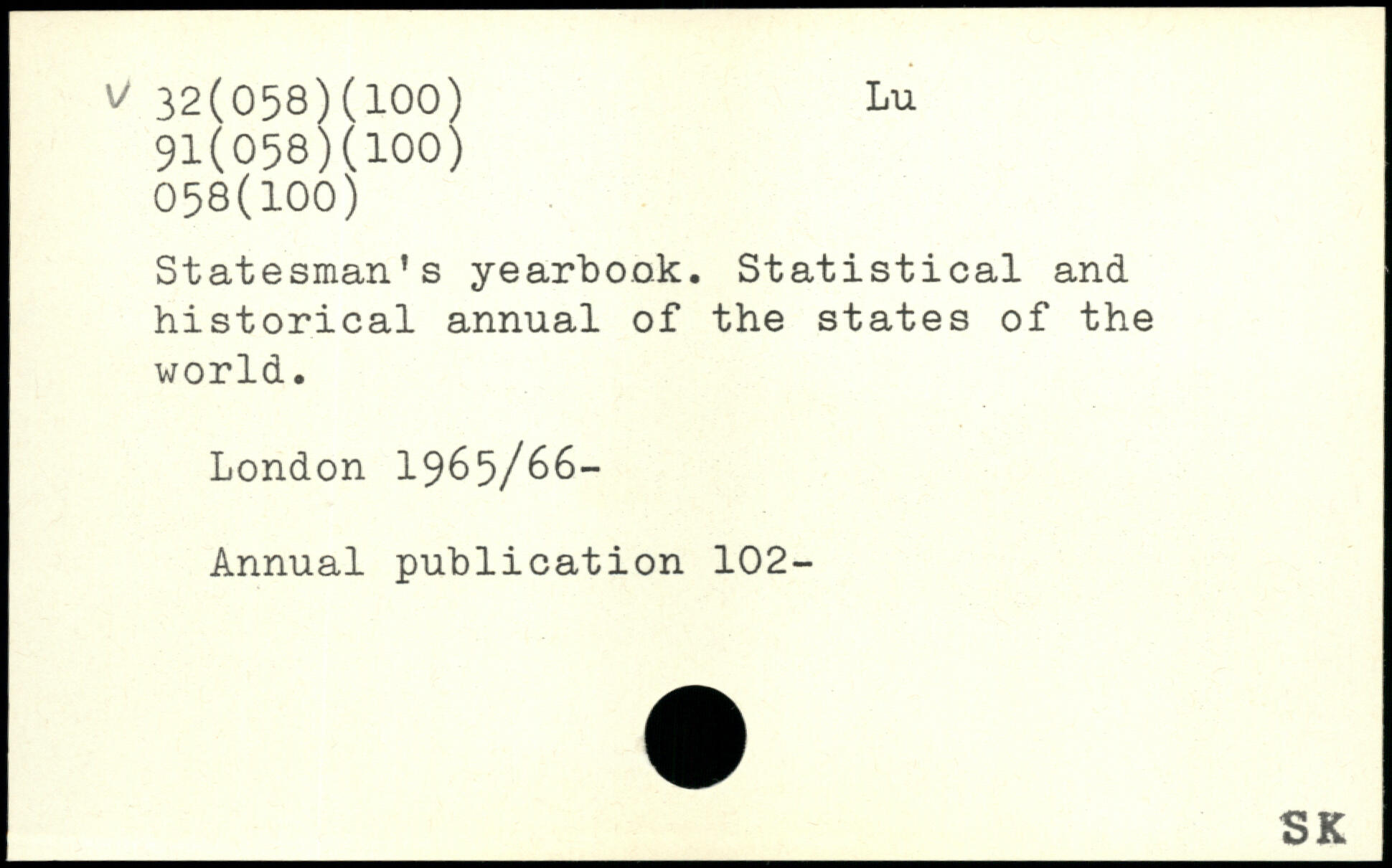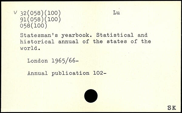Statesman’s yearbook. Statistical and historical annual of the states of the world. London 19^5/66-Annual publication 102-