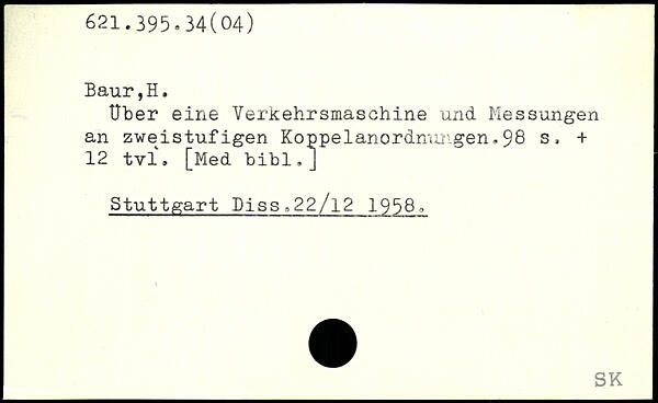 Uber eine VerKehrsmaschine und Messungen an zweistufigen Koppelanordmmgen.