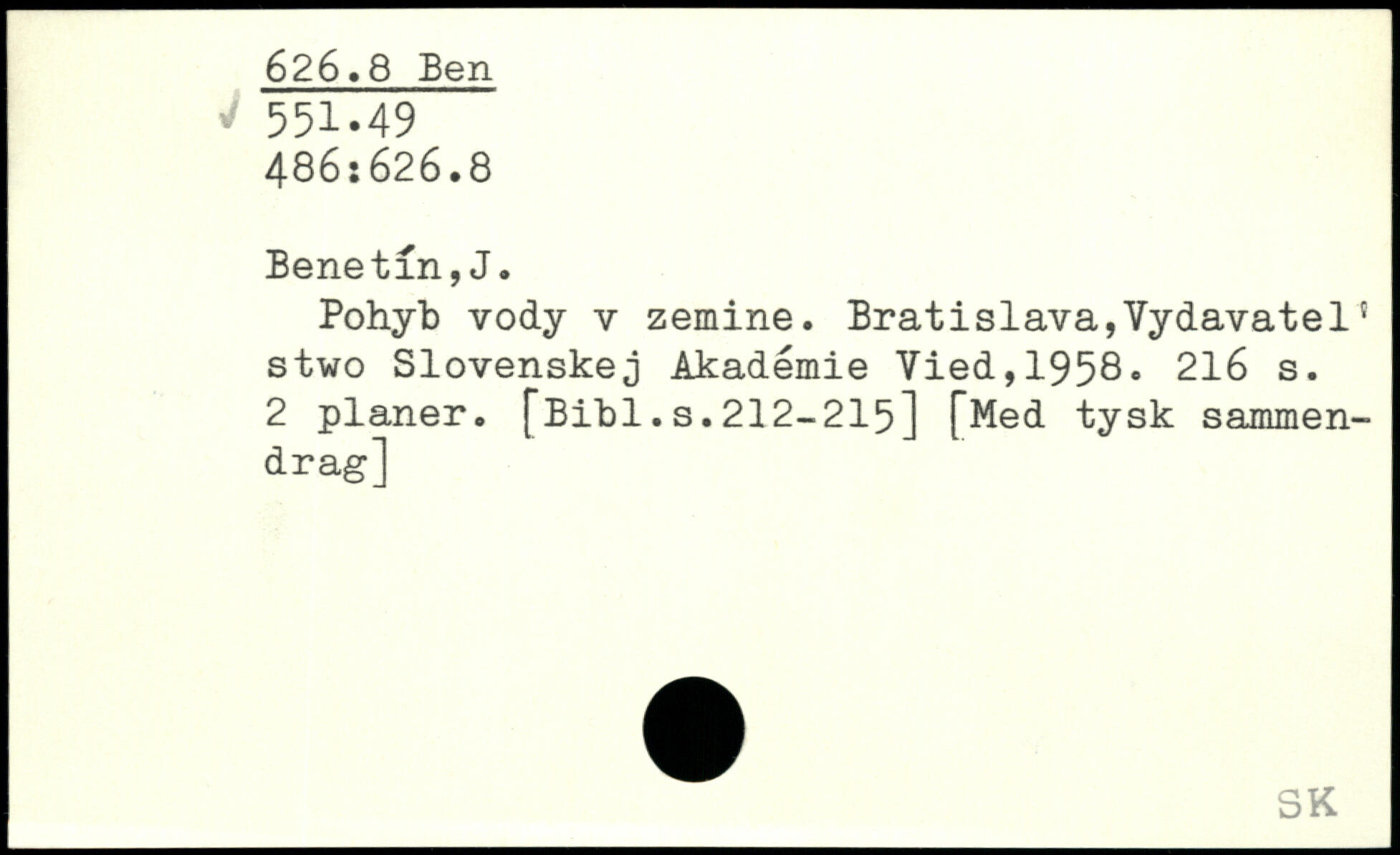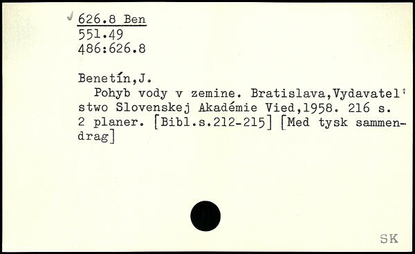 UDK: 626.8 Ben, 551.49, 486:626.8