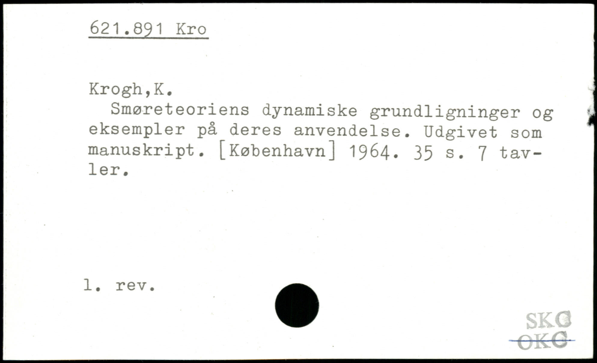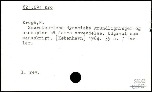 Smøreteoriens dynamiske grundligninger og j eksempler på deres anvendelse. Udgivet som manuskript.
